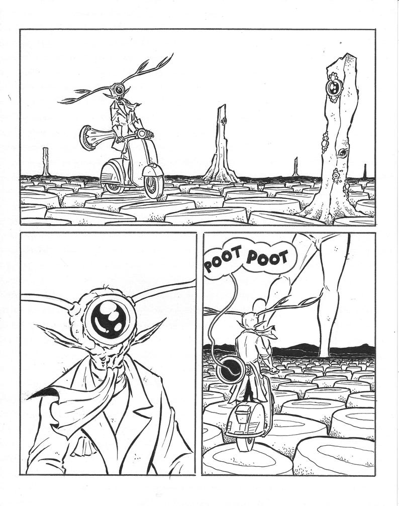 (NOTE: Many pages from Chrome Fetus Studios are composites of different drawings on multiple bits of paper and flotsam - sometimes crudely cobbled together with glue or tape. You may also find pencil marks, scribbled notes and graphite thumbprints. Consider these features as a means of certifying the genuineness of the artwork!)