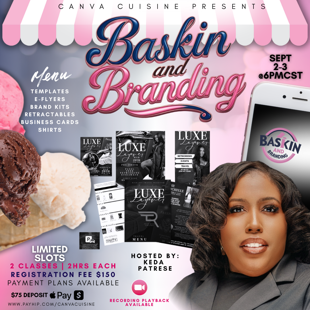 You will learn how to scoop up professional branding essentials by way of designing retractable banners, business cards, templates, e-flyers, and shirts to creating a brand aesthetic that feels just as crave-worthy as your favorite sundae.