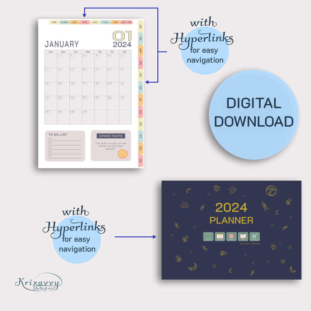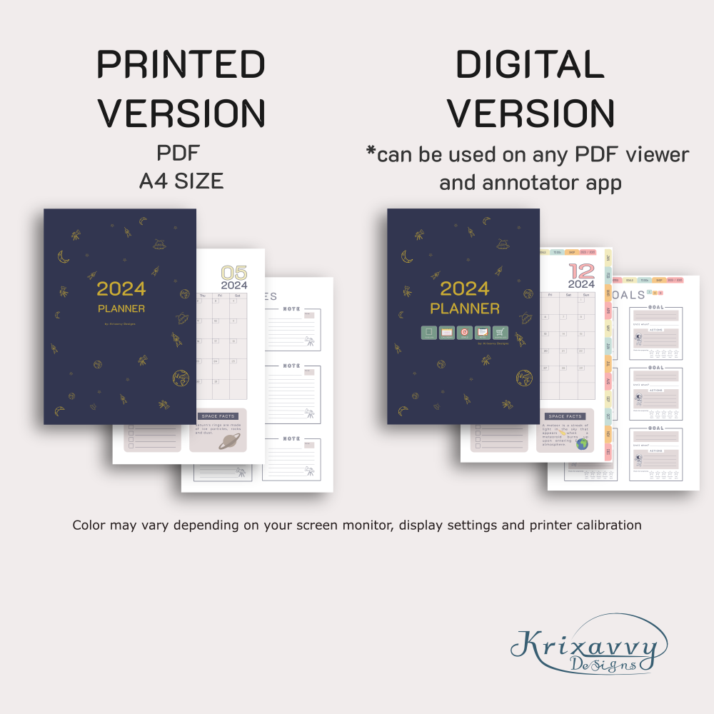2024 Digital Planner and Printable Planner (SPACE-themed)