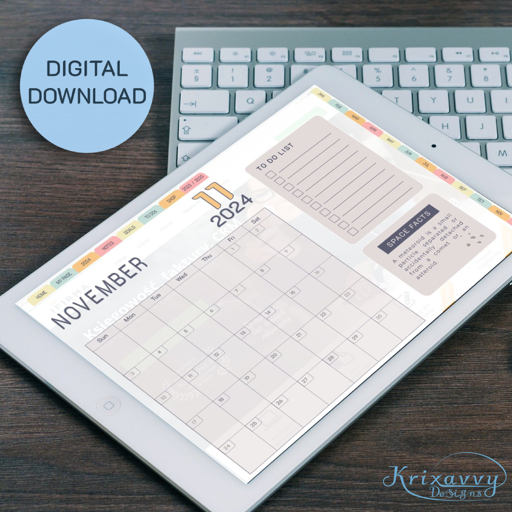 Organized year 2024 with this Dated MONTHLY Digital PLANNER and Printable PLANNER.