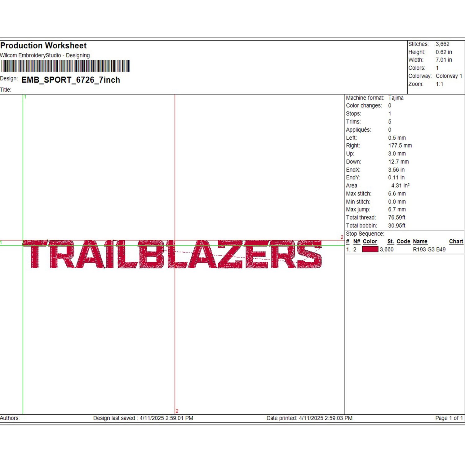 NCAA Trailblazers Wordmark Embroidery Designs, NCAA Utah Tech Trailblazers Machine Embroidery Designs, NCAA Logo Machine embroidery designs, Ncaa Trailblazers Logo, Digital Download