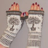A garden is a thing of beauty, and this one is a joy forever. These mitts feature corrugated ribbing, purl ridges for textural contrast, a classic speckled trellis pattern, stockinette stripes, and a sweet topiary design.