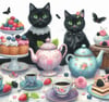 Black Cat Tea Party Cross Stitch Pattern PDF Instant Download