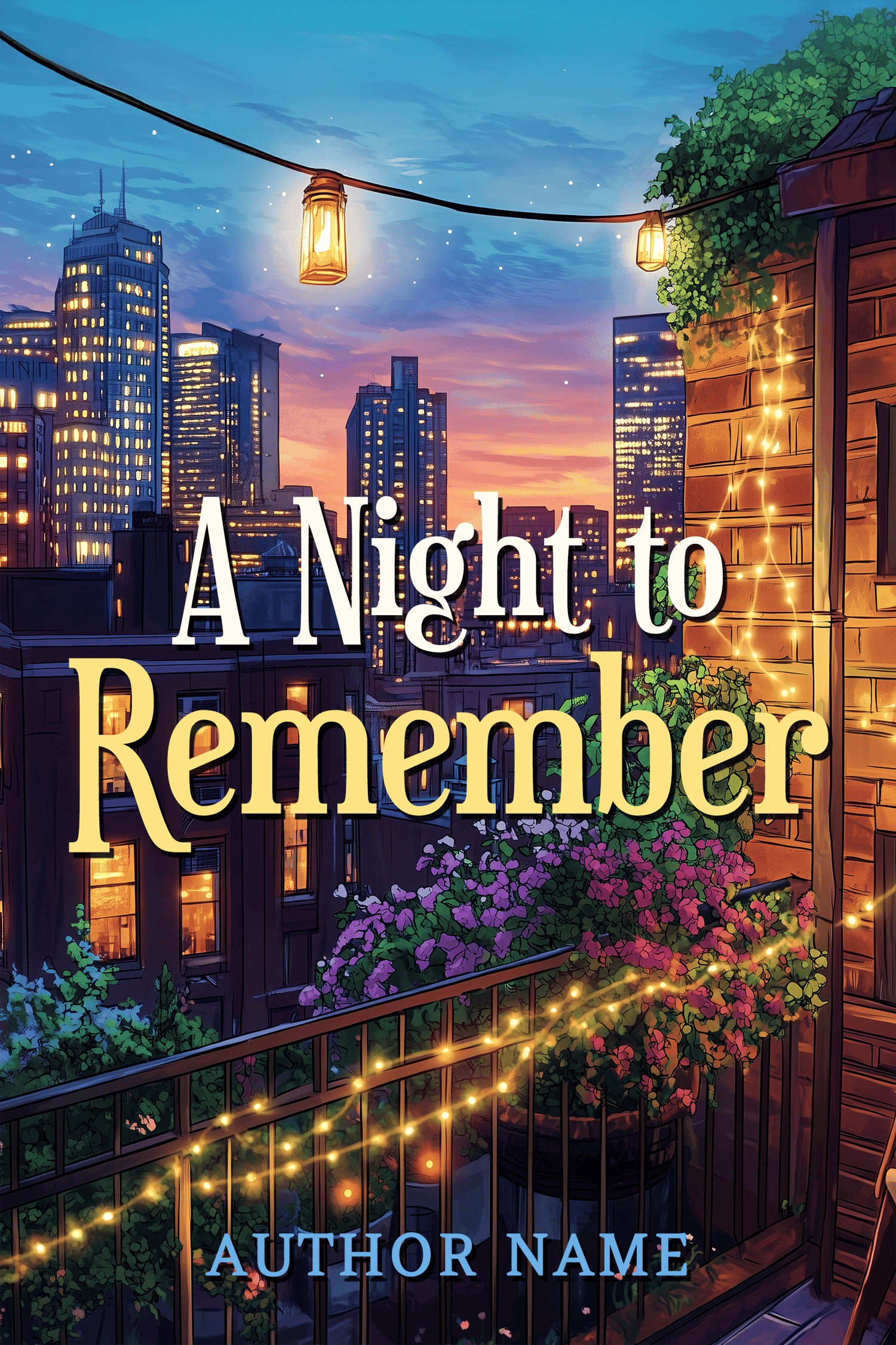 - Title & author name can be added free of charge using the basic typography shown on the sample cover. Text placement, and subtle color tweaks, are included.