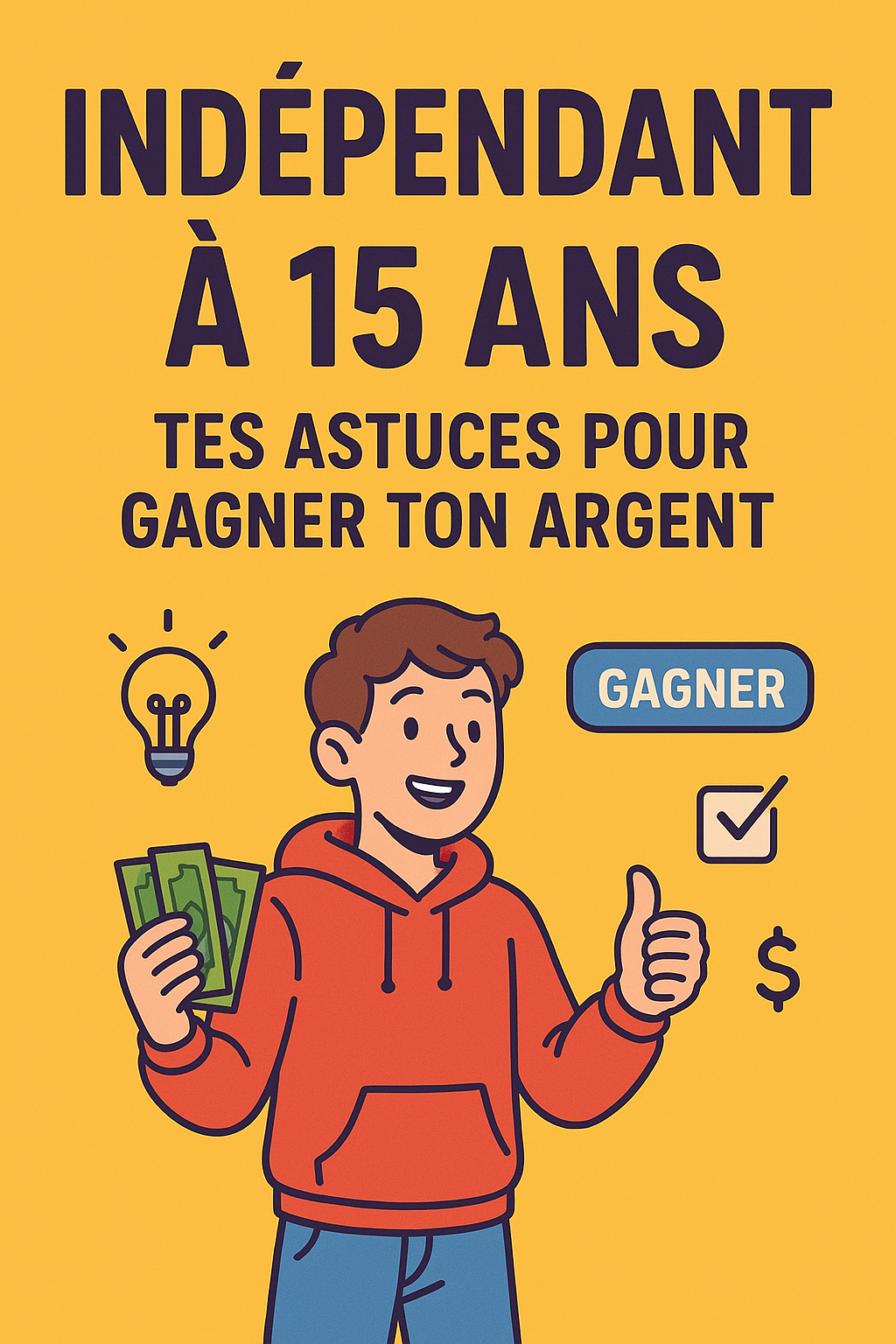 Découvre ce guide pratique conçu pour les jeunes ambitieux ! Apprends à devenir autonome financièrement dès 15 ans grâce à des méthodes simples et légales : micro-services, ventes de produits digitaux, applications rémunératrices, création de contenu sur YouTube ou TikTok, et plus encore.