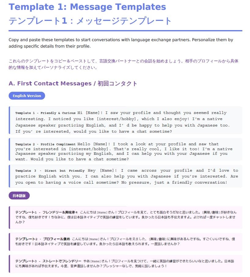 - 語学交換メッセージテンプレート → コピペして今日から送る
