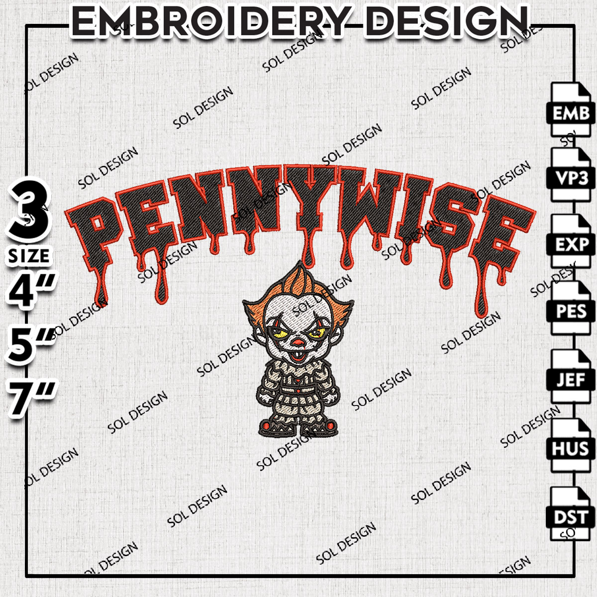 Drop Name Horror Chibi Pennywise Embroidery Files, Horror Characters Embroidery, Halloween Machine Embroidery Designs