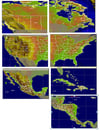 Conjunto de mapas de niveles de inundación correspondientes a los países de América del Norte.