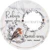 Beautiful Robins appear and feathers appear circular design which can be resized with space to add your own photograph.