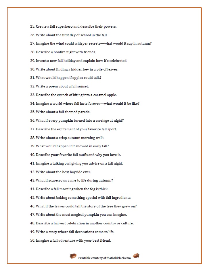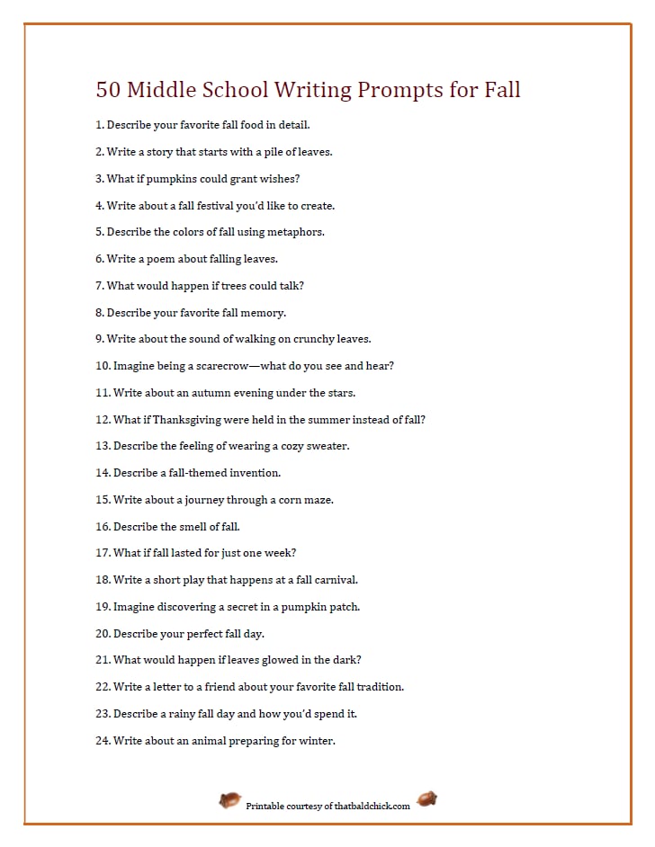 Turn blank pages into cozy fall stories with 50 middle school writing prompts!