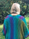 The width of this garment is determined by the number of rows worked and the length is determined by the number of stitches cast on.