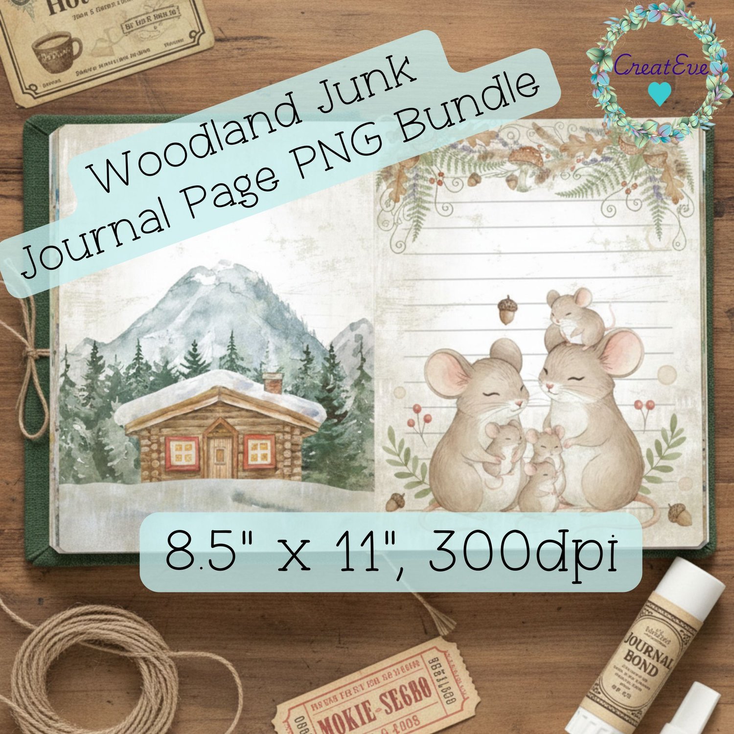 Woodland Junk Journal Page PNGs, 8.5"x11", Commercial KDP & POD Use, 300dpi