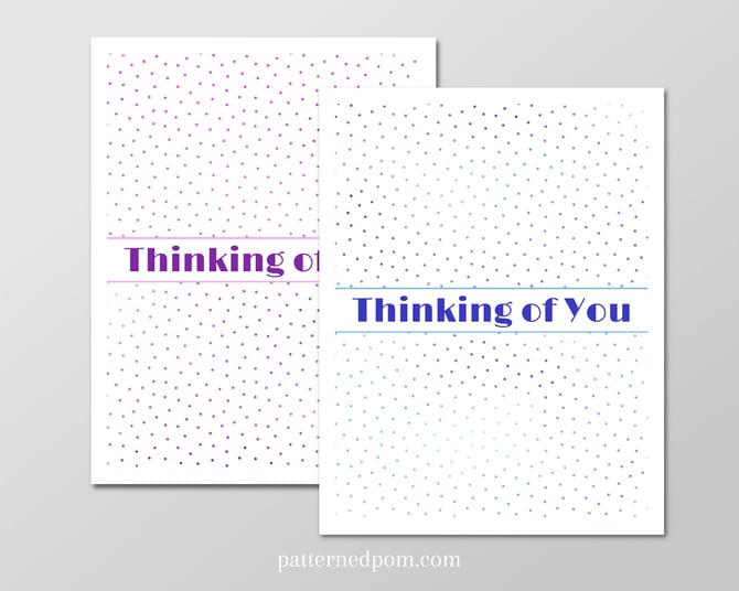 Sometimes you just need to send a little note to let your friend know you are thinking about them. You can do that easily with this adorable micro polka dot thinking of you card! Included in this digital download is a printable thinking of you card in both blues and pink/purple colors.