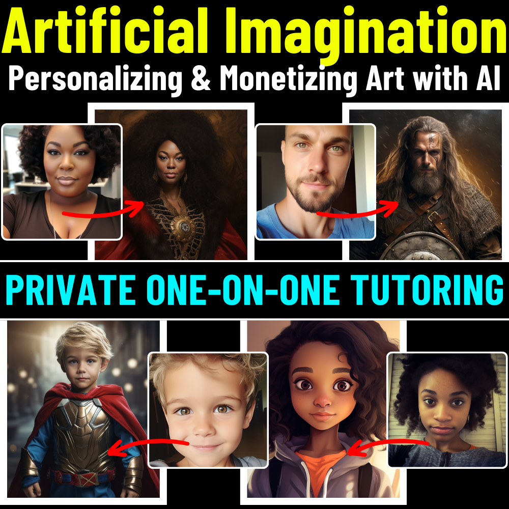ONE-ON-ONE TUTORING & VIDEO GUIDE - Artificial Imagination: Personalizing & Monetizing Art with AI