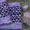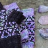 Sample mitts knitted in Countess Ablaze, Lord of Silk DK, (75% Falkland Merino, 25% mulberry silk),