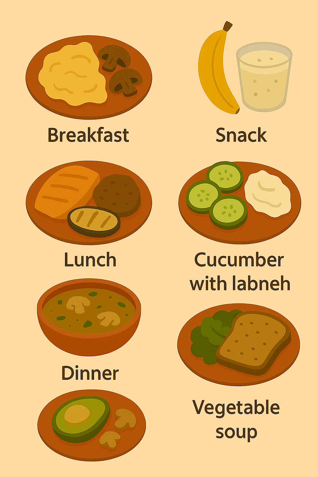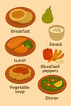 - Breakfast, lunch, dinner, and snack ideas.