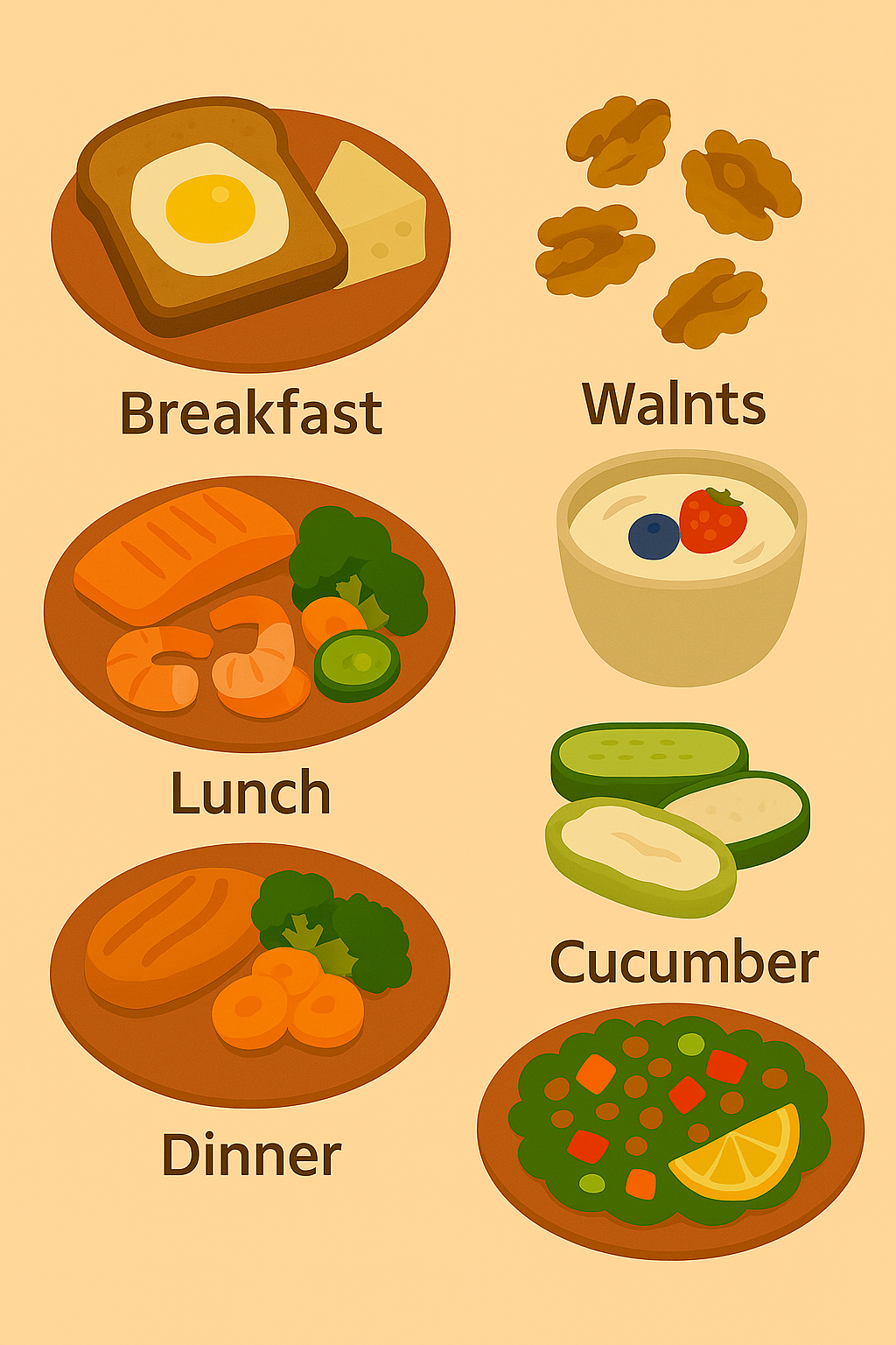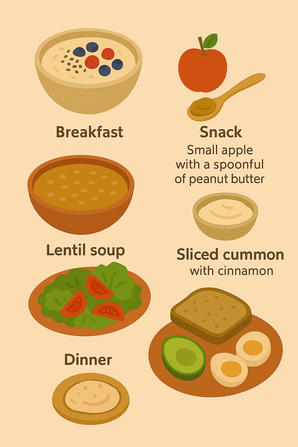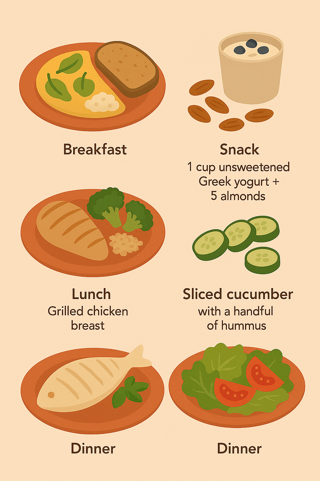 - Low-glycemic meals (no blood sugar spikes).