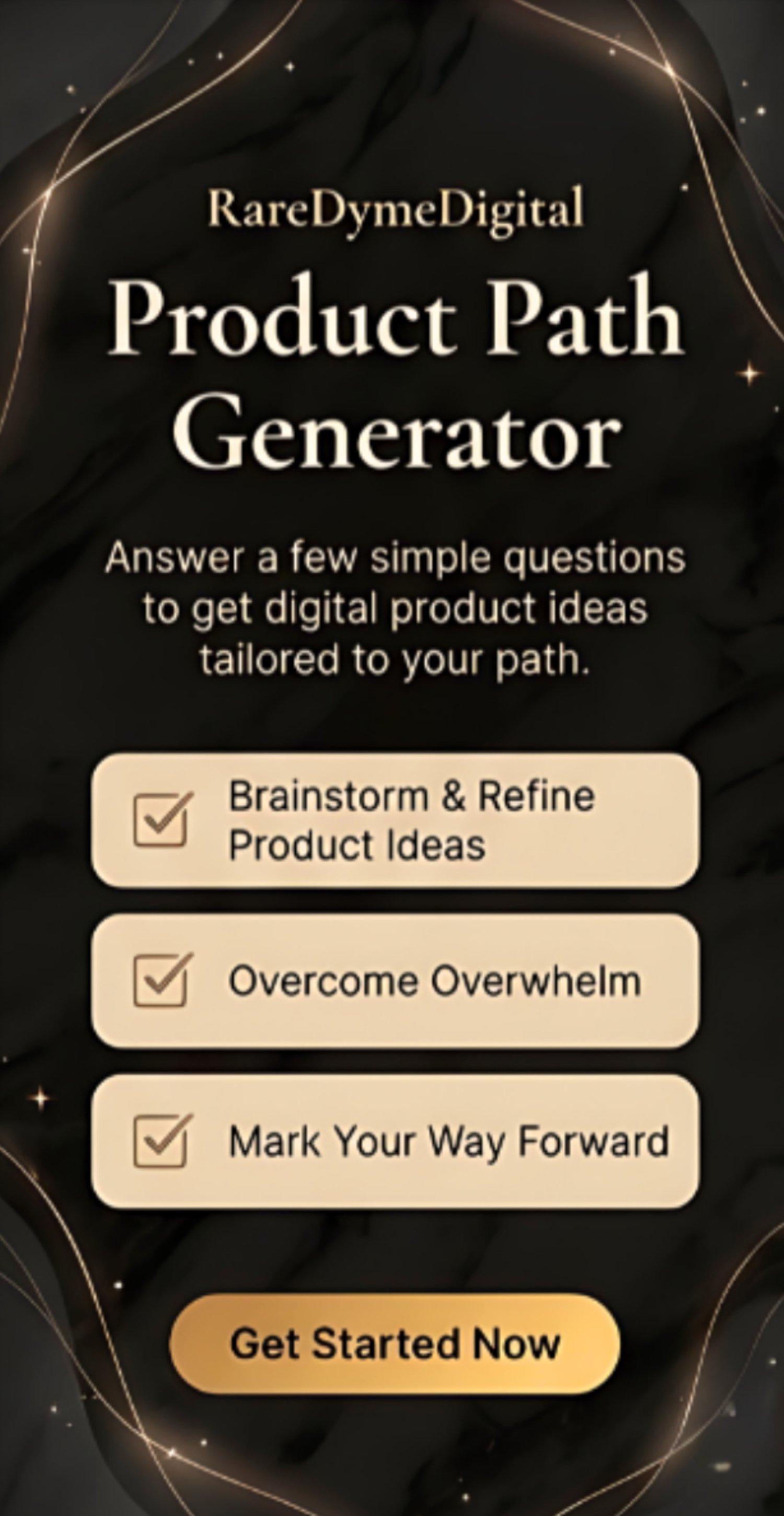 Meet the RareDymeDigital Product Path Generator, your beginner-friendly digital gem for figuring out what kind of digital product you should create first. If you’ve been wanting to start but feel stuck, overwhelmed, or unsure of what makes sense for you, this tool is here to help you stop overthinking and start seeing a path. With just a few simple questions, this generator helps you discover a digital product idea that fits your vibe, your strengths, your comfort level, and where you are right now. Whether you’re interested in checklists, guides, prompts, templates, journals, planners, or something in between, this tool is designed to give you direction without making things feel complicated. It’s simple, interactive, beginner-friendly, and made for people who want to start where they are and build with intention. This isn’t about doing everything at once — it’s about finding a product path that feels doable, aligned, and worth exploring. Perfect for aspiring digital creators, overthinkers, faceless brand builders, and anyone trying to turn ideas into income one step at a time. Start simple. Mark your way. Grow from there.