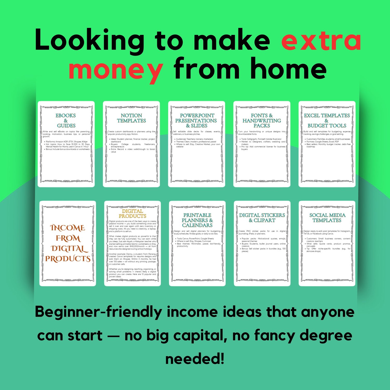 Each idea includes simple, actionable guidance so you can start immediately — no complicated jargon, no high startup costs.