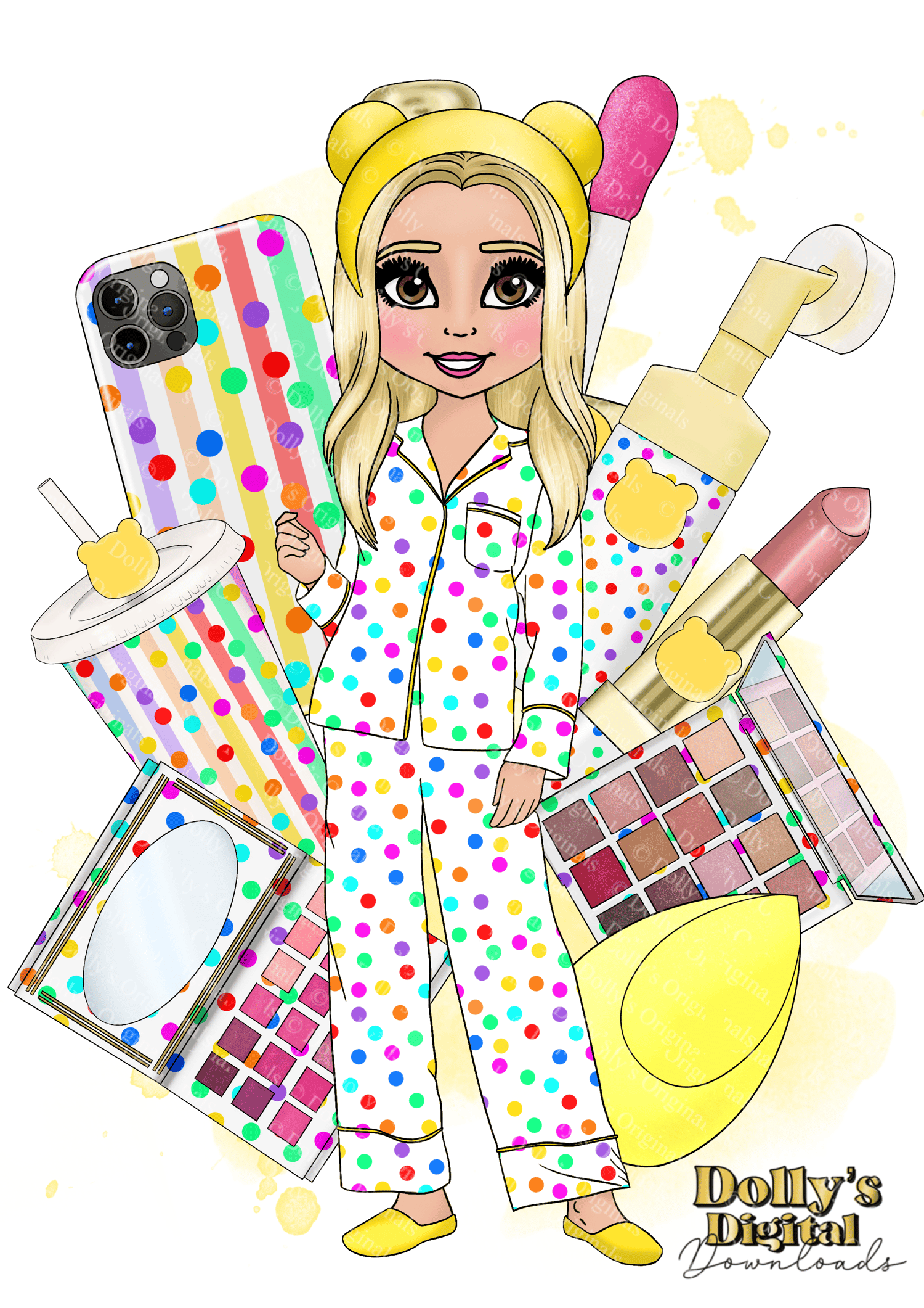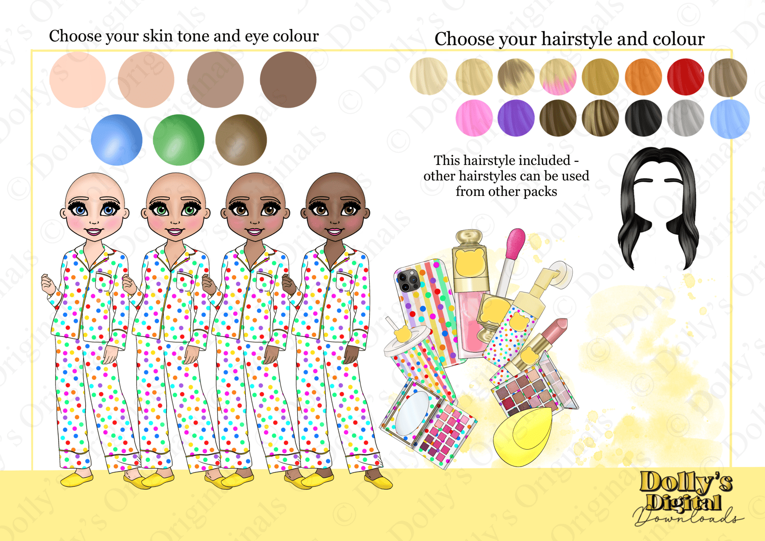 Instant digital download of our Bright Dotty Makeup Dolly Character Bundle PNG (45 PNG’s)