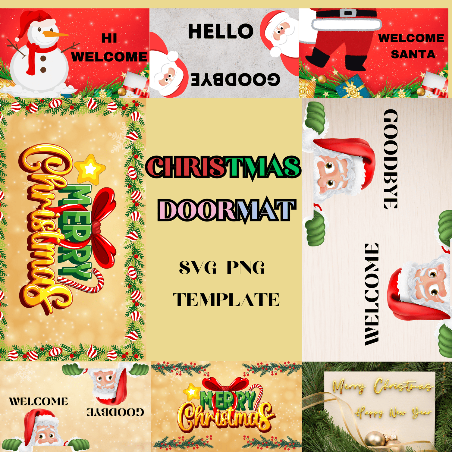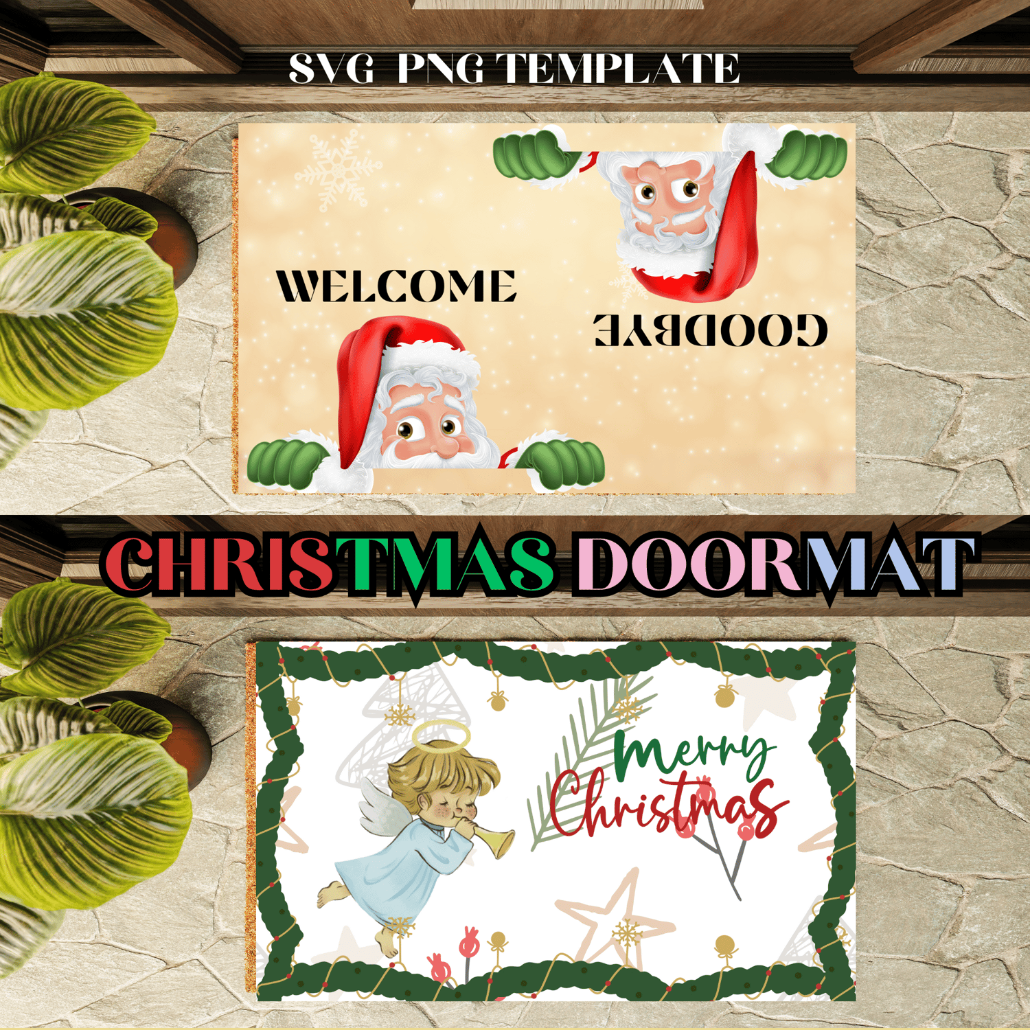 43 Christmas Doormat SVG Front Door Decor, Santa Welcome and Goodbye Set, Holiday Welcome Mat PNG Bundle, Winter Outdoor Decor Template