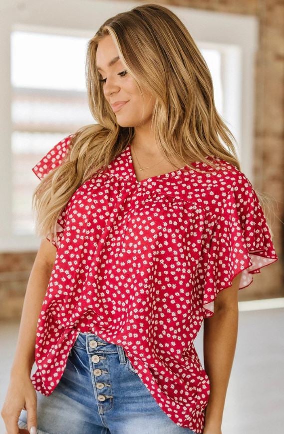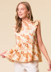 Floral Ruffle Mock Neck Tiered Flowy Top - Apricot / $19.99