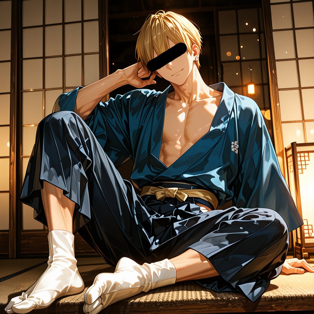 日本の正月をテーマに、着物を着用している男性を、キャラクターごとにお任せ作成しました。男らしいキャラクターの魅力を思い切って表現しました。