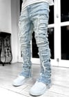 Men's denim straight leg pants with elastic patch fabric
