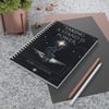Inside, 128 ruled pages of smooth paper handles pens with minimal bleed and a satisfying glide. The white metal spiral lays flat so nothing interrupts the writing. Use it for plotting, planning, morning pages, or the kind of notes that feel too important for a phone screen.