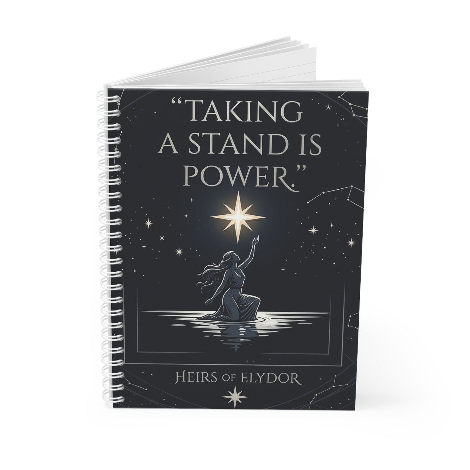 Pulled directly from the final book of the Heirs of Elydor series, this quote lives on the cover of a journal built for the thoughts you actually mean. Deep navy, celestial illustration, a figure rising ... it looks like something recovered from Elydor itself.