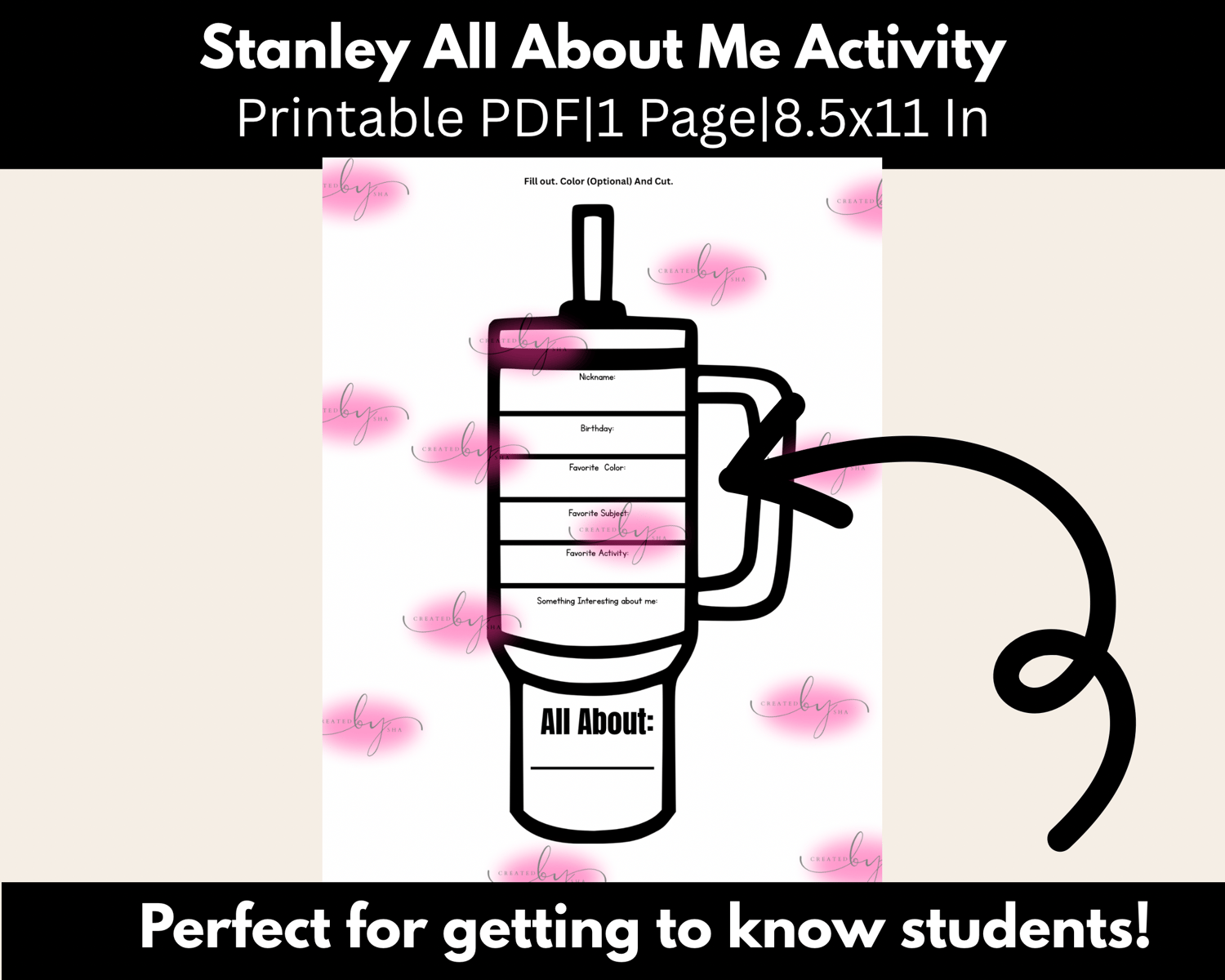 Stanley Themed All About Me Printable Worksheet – Back to School Activity for Students
