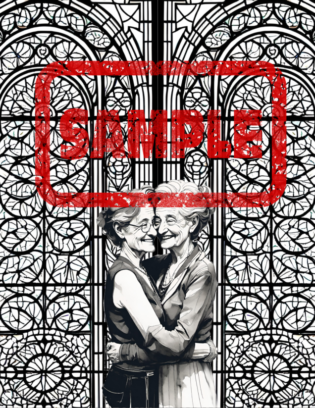 I love making them...so here is a printable for your enjoyment. Find various lesbian couples overlayed on intricate patterns ranging from geometric to floral and even Celtic knotwork. I also sell the individual pages for $1 a piece, so all 25 for $10 is a deal!