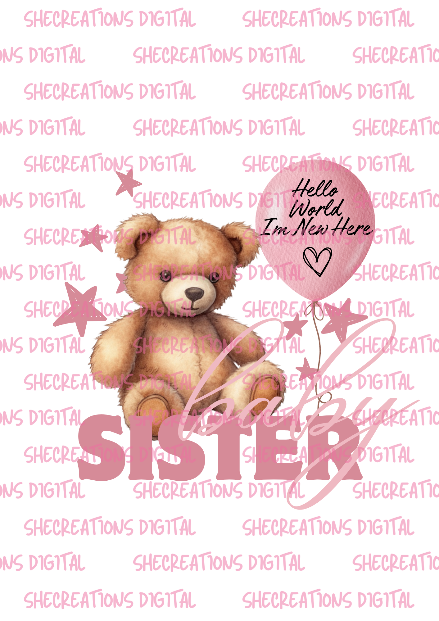 New Baby Bundle Pink PNGS, includes Big Sister, Baby Sister, Hello World & Little Princess