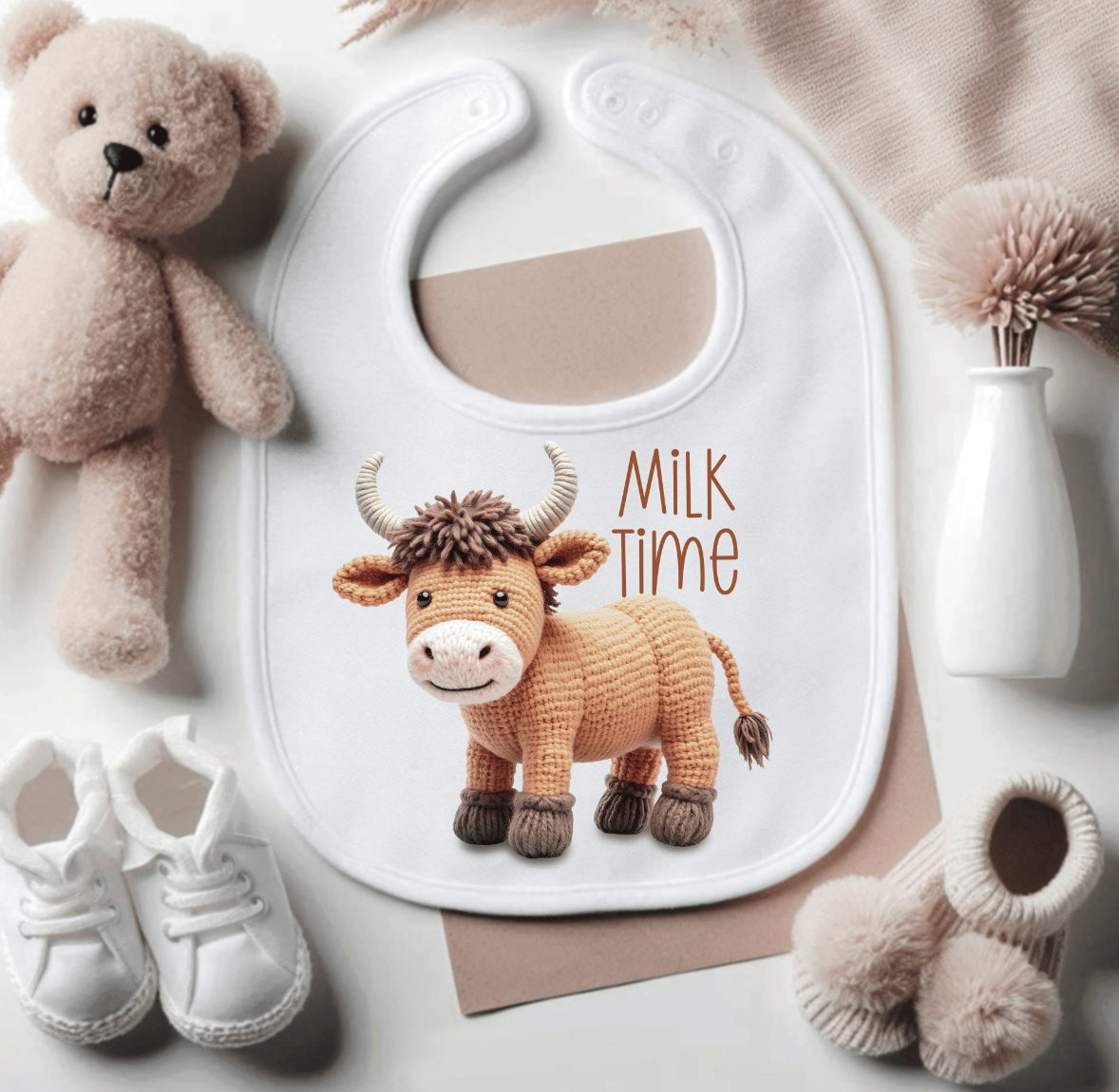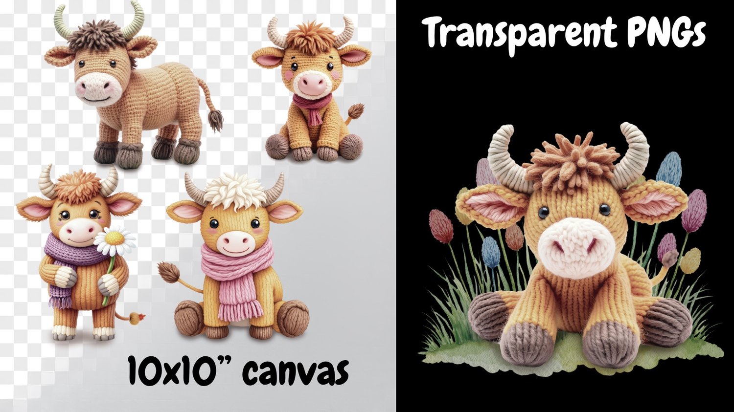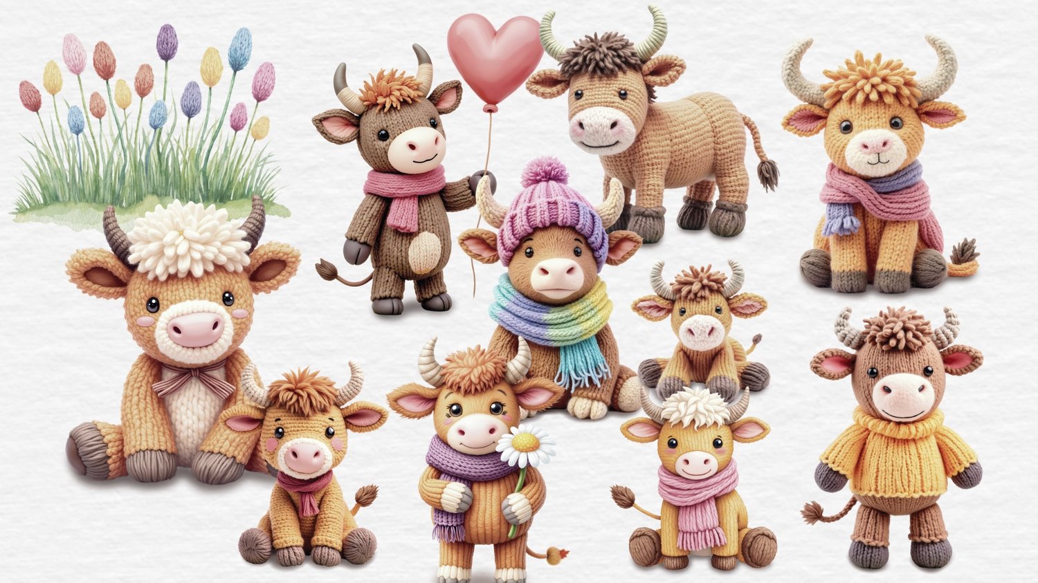 🧡 Includes 10 faux-knitted Highland cow illustrations + 1 knitted flower background
