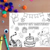 Hand out the coloring pages at the party for a fun, interactive activity kids can color, personalize, and take home as a keepsake!