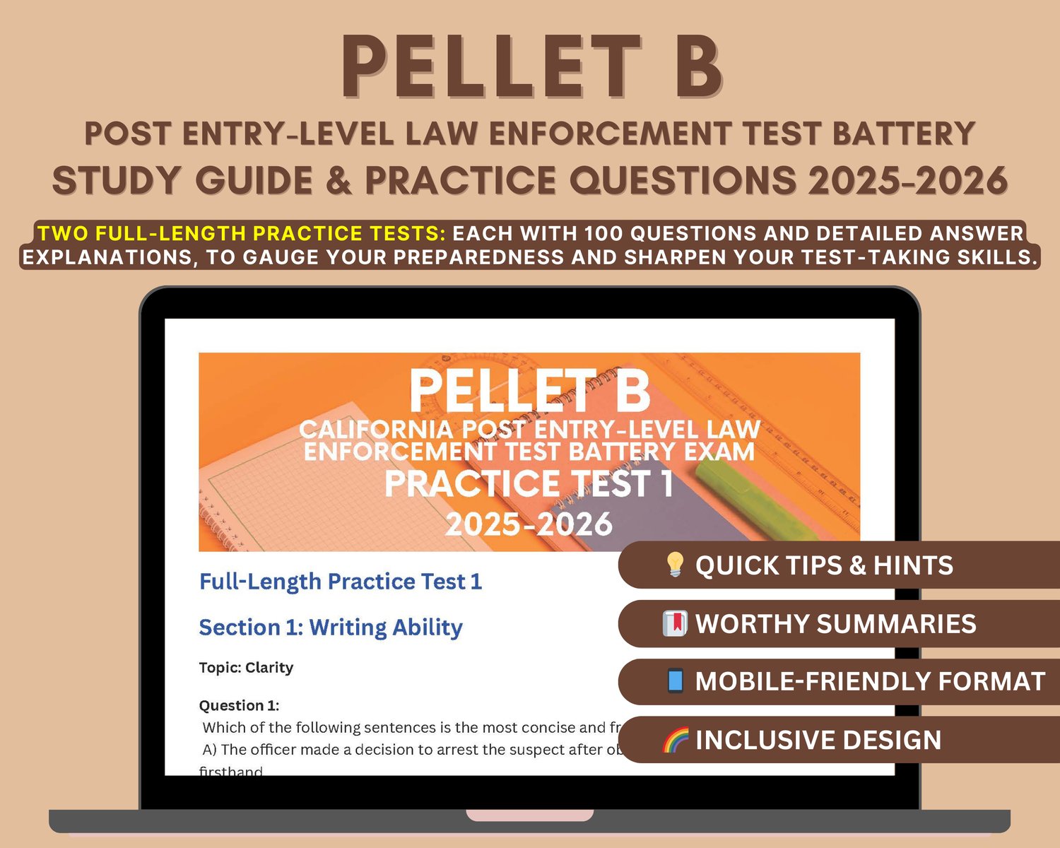 Don’t leave your future to chance. With the PELLET B Study Guide 2025-2026, you’ll have the tools and confidence to pass the exam and take the first step toward your dream job in law enforcement.