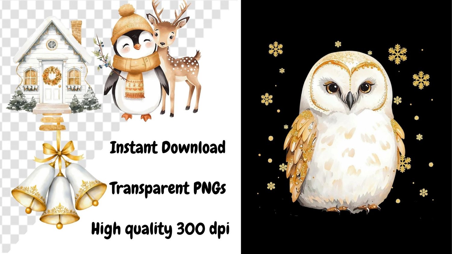 White and Gold Christmas clipart bundle. 16 PNGs. DTF, UVDTF etc. Sublimation, Print, DTF etc. Personalise, customise