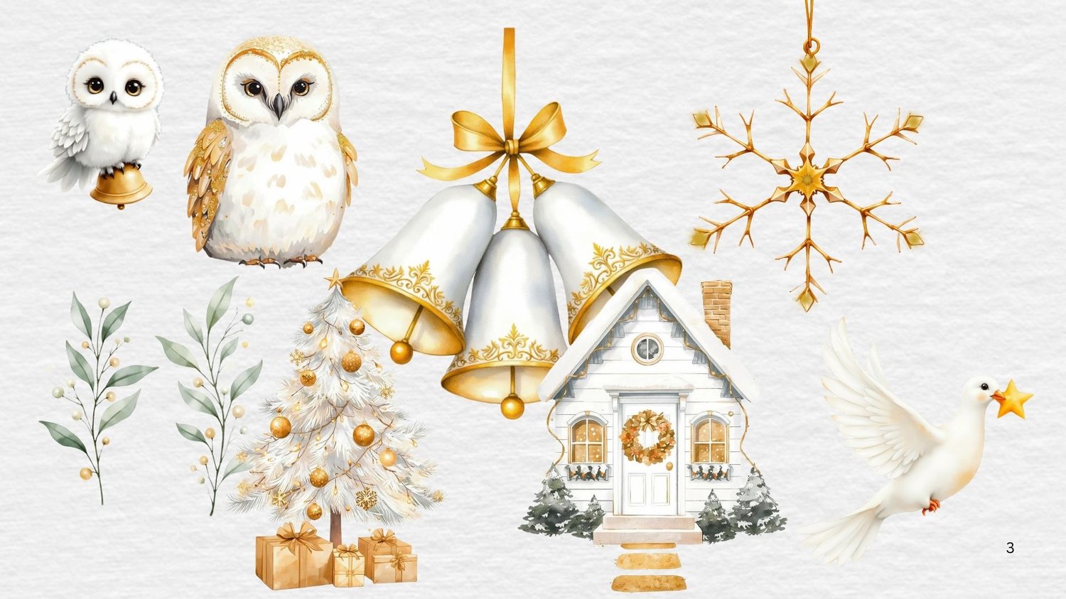 White and Gold Christmas clipart bundle. 16 PNGs.
