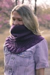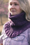 Deeply textured honeycomb cables decorate this seamless double layer bandana cowl. Begun flat and then joined in the round, the shawl structure shows off the beautiful stitch pattern, with all the convenience of an easy to wear cowl.