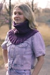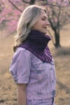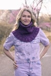 Yarn: Green Mountain Spinnery Mewesic (100% fine American wool; 180 yards/ 165m/58g), sample shown in Purple Rain 8951; 2 skeins, or approximately 360 yards of DK weight wool yarn. Choose a rustic or sturdy yarn to enhance the structure of the cowl.