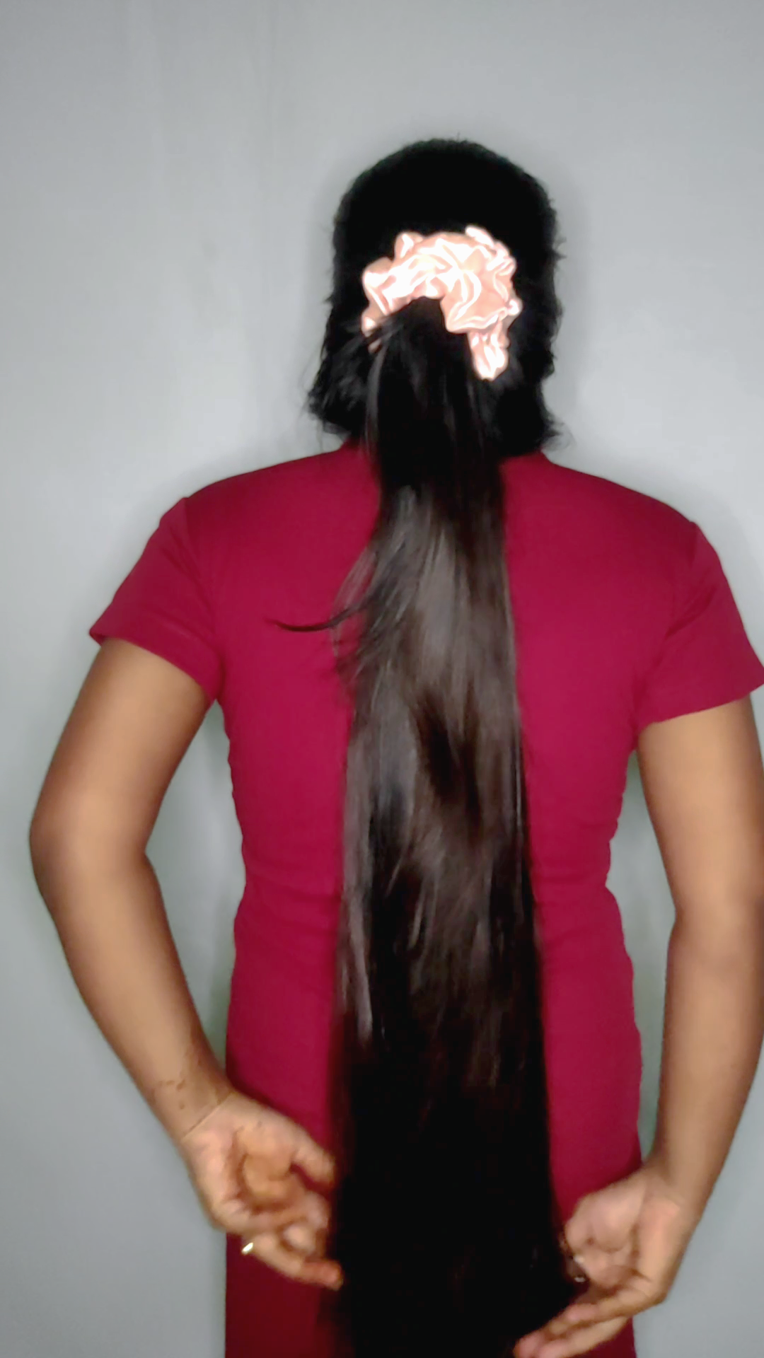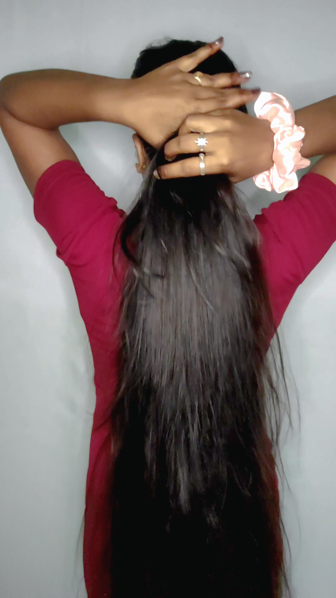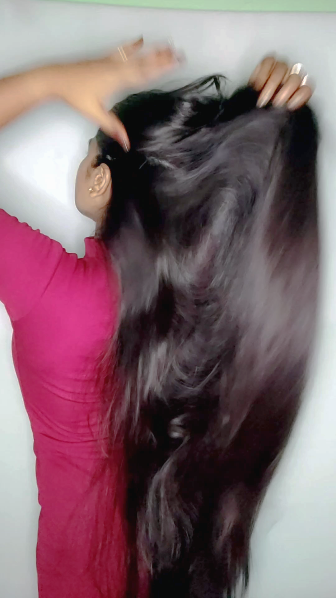 Graceful Long Hair Flaunt | Hair Play, Brushing & Elegance in Red Attire