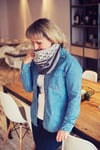 Speckles of playful color on a wintry background of silvers and greys remind us that spring will come again. But while you’re waiting, this sampler-like cowl will engage your mind and senses as you experiment with colors and create a variety of textures. So fun to knit, you’ll be sorry to see it end…until you put it on and let it warm you deep within.