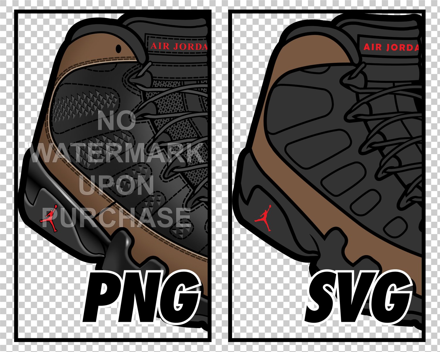 Air Jordan 9 Olive JPEG PNG SVG Digital Sneaker Art