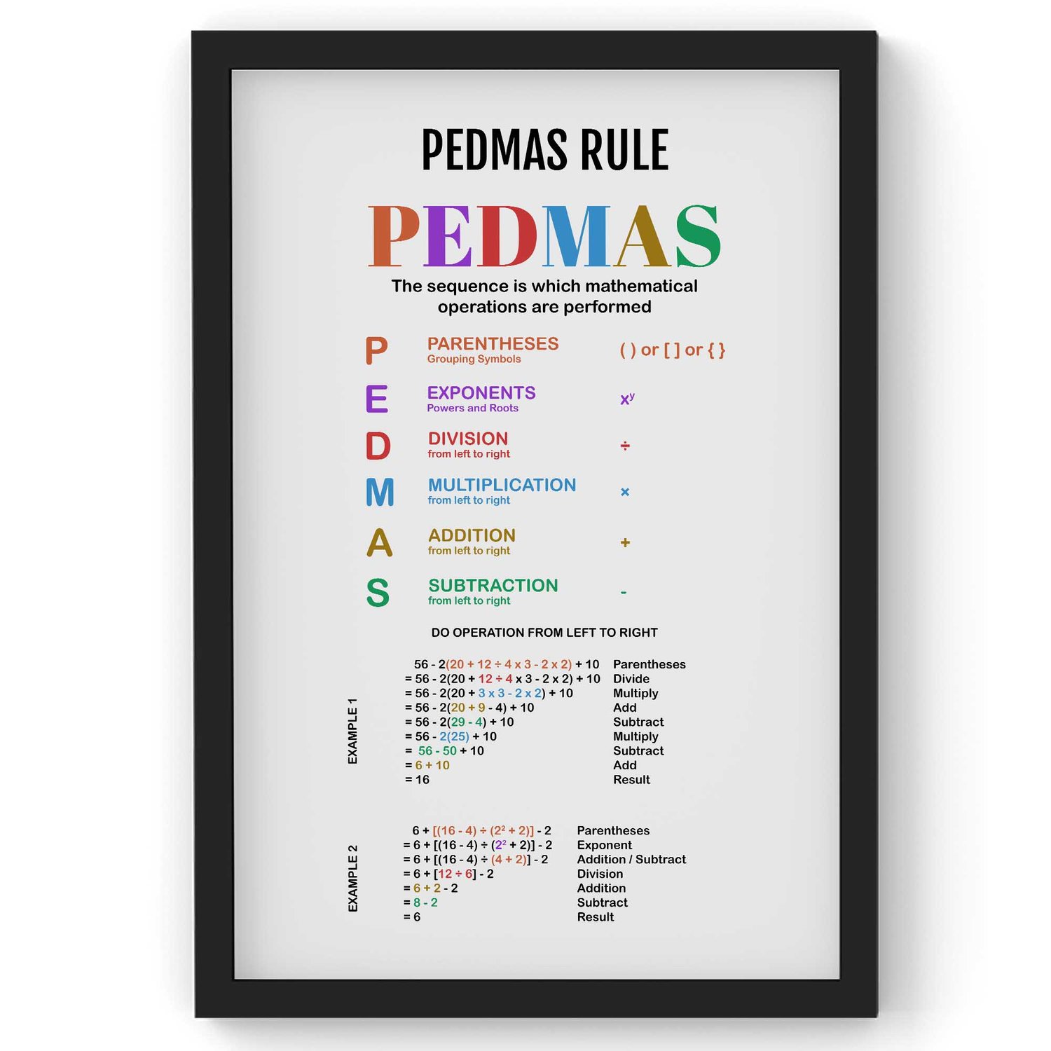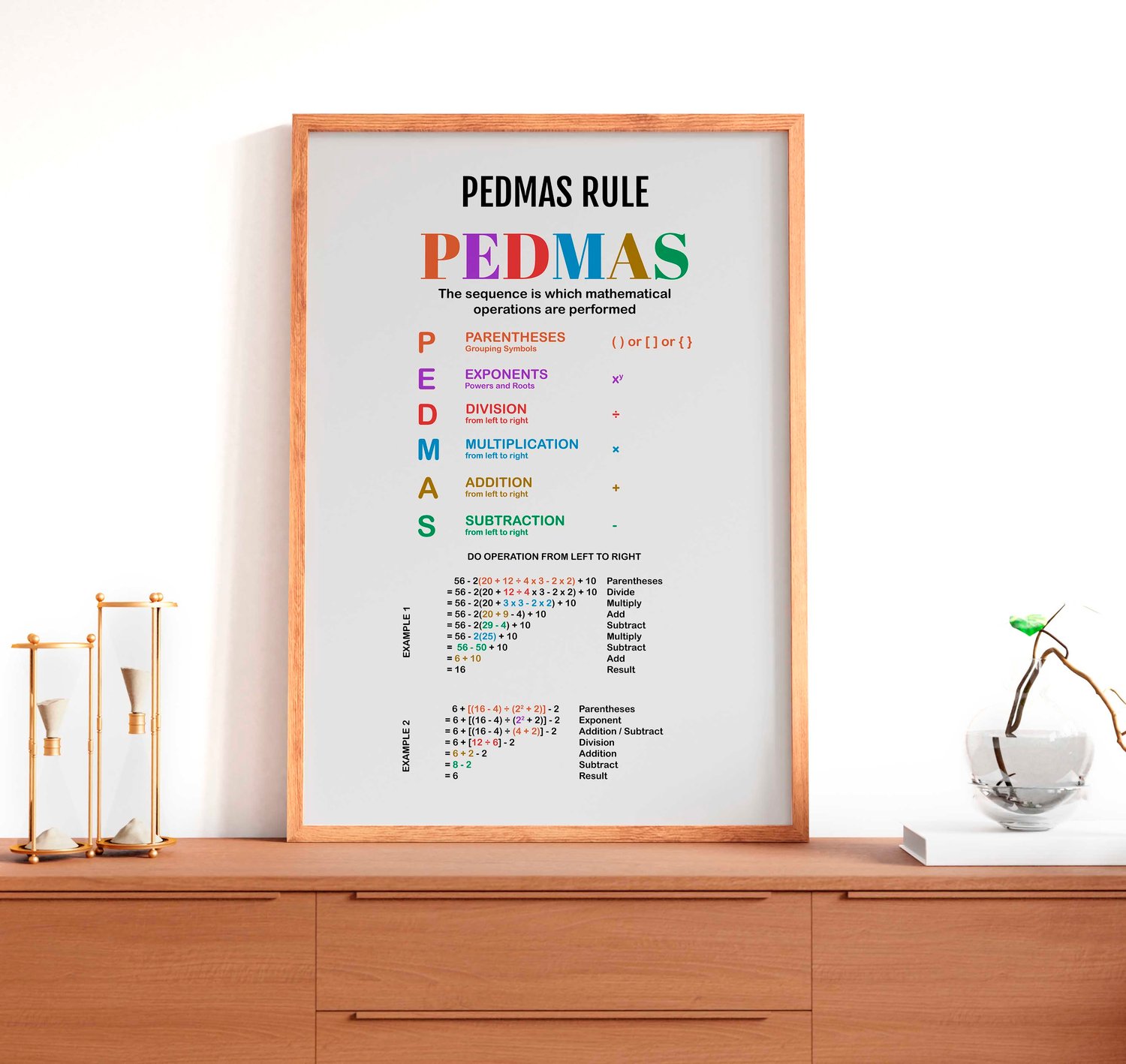 PEDMAS Rule, Math Poster, Kids Room Decor, Classroom Decor, Educational Wall art, Arithematic Poster, Digital Download (3 Jpeg Files)