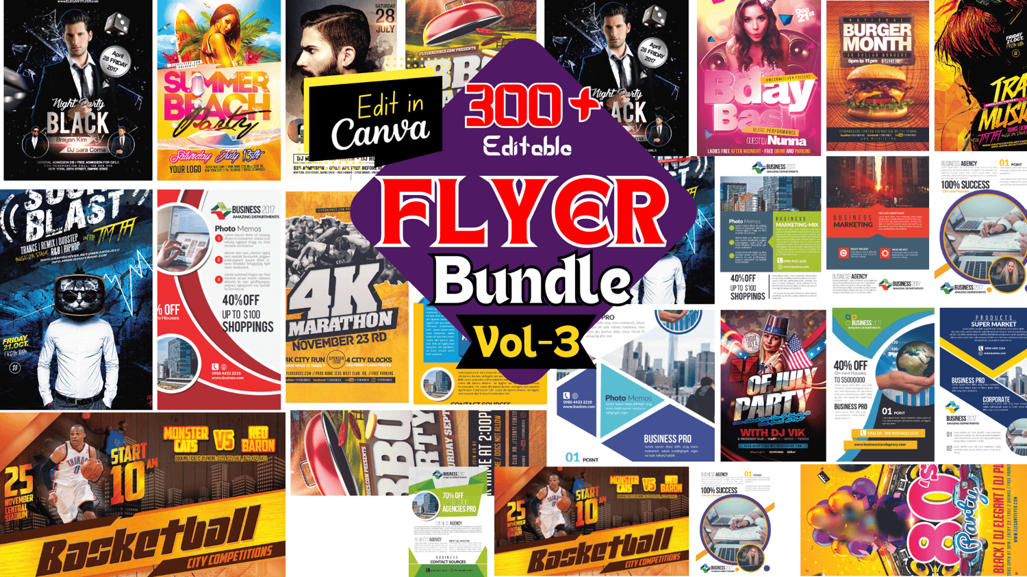 300+ Flyer Designs with Editable Canva Flyer Templates-vol-3 | Customizable Flyer Template | Boost Your Sales with Our Flyer Template Bundle
