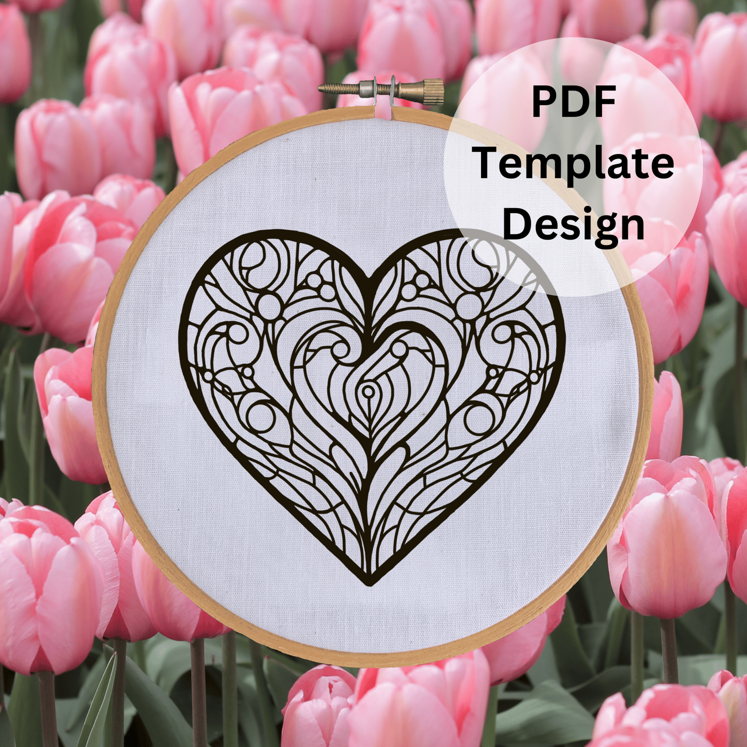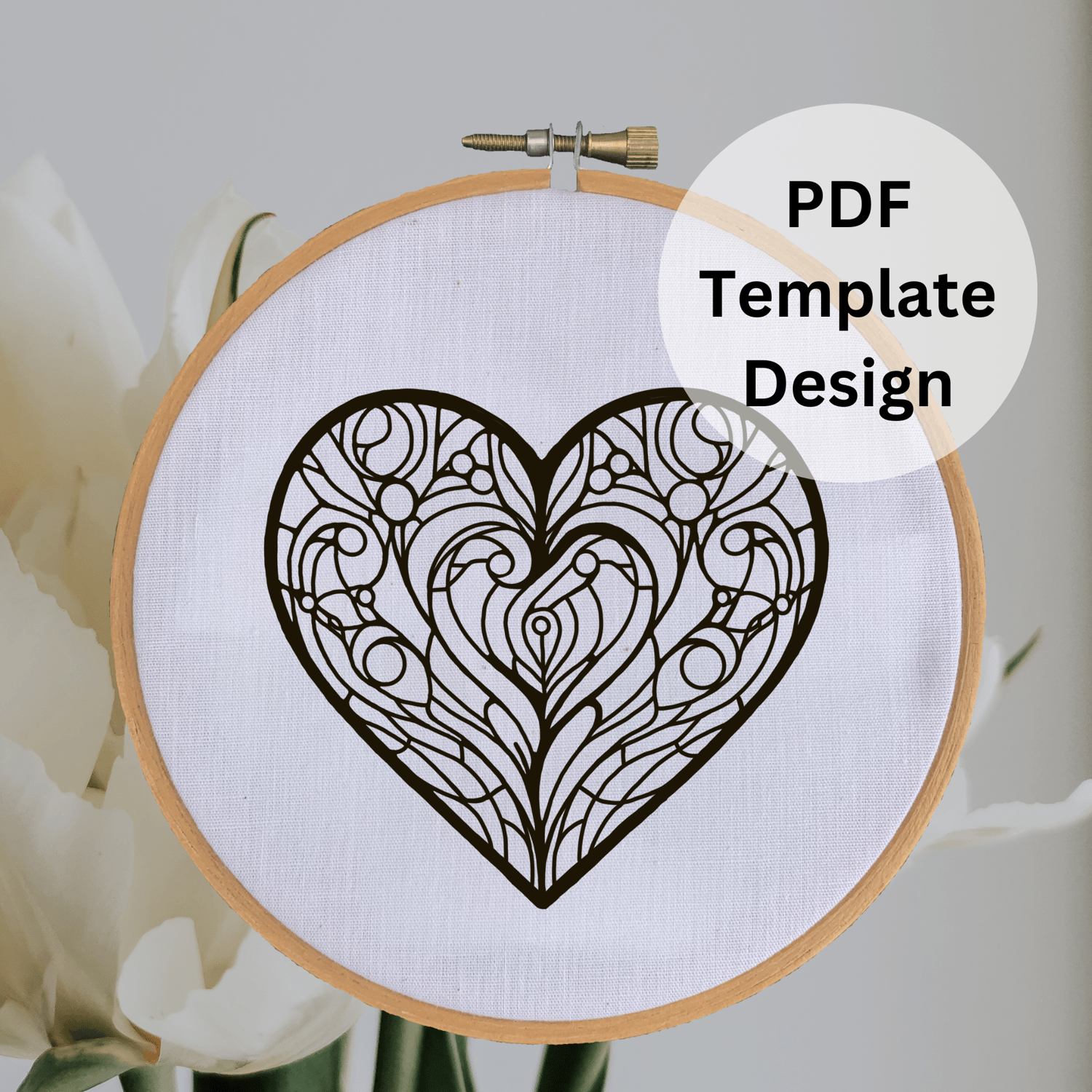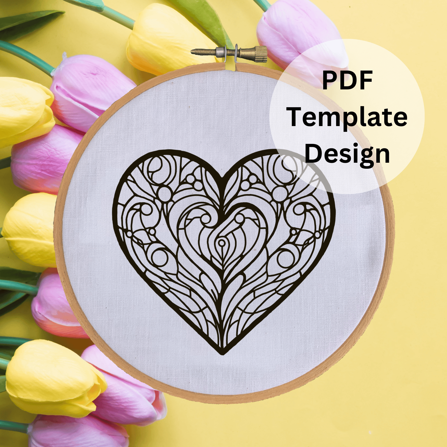 Stained Glass Heart Hand Embroidery Pattern - DIY Design