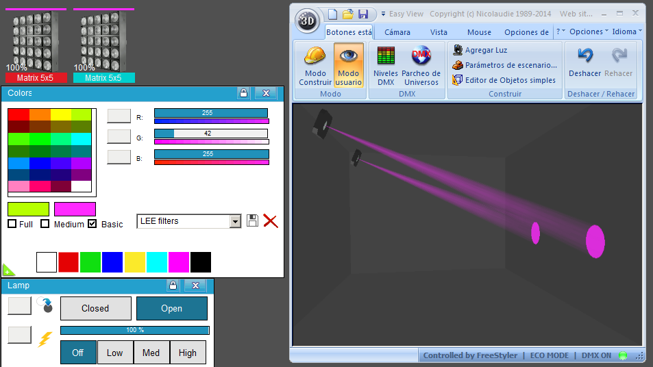 Estas Librerías SSL2 están optimizadas para trabajar con Magic 3d Easy View. Es decir para ver una representación 3D de las secuencias que estemos realizando con Freestyler, QLC+ o cualquier otro soft que se conecte con Magic 3d.