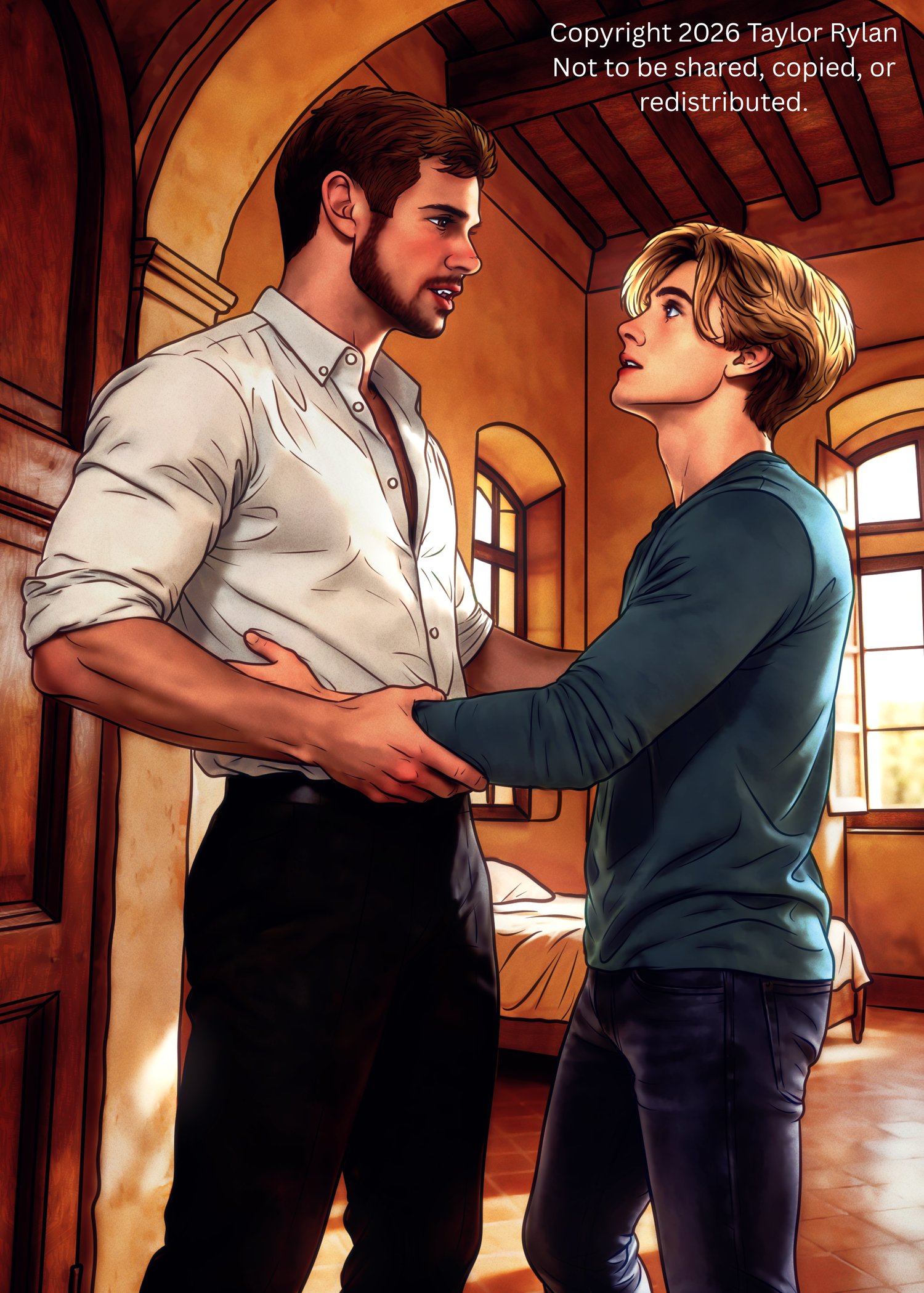 Image depicts Marcello and Abel at the moment they meet, when Abel tries to run out of Marcello's room.