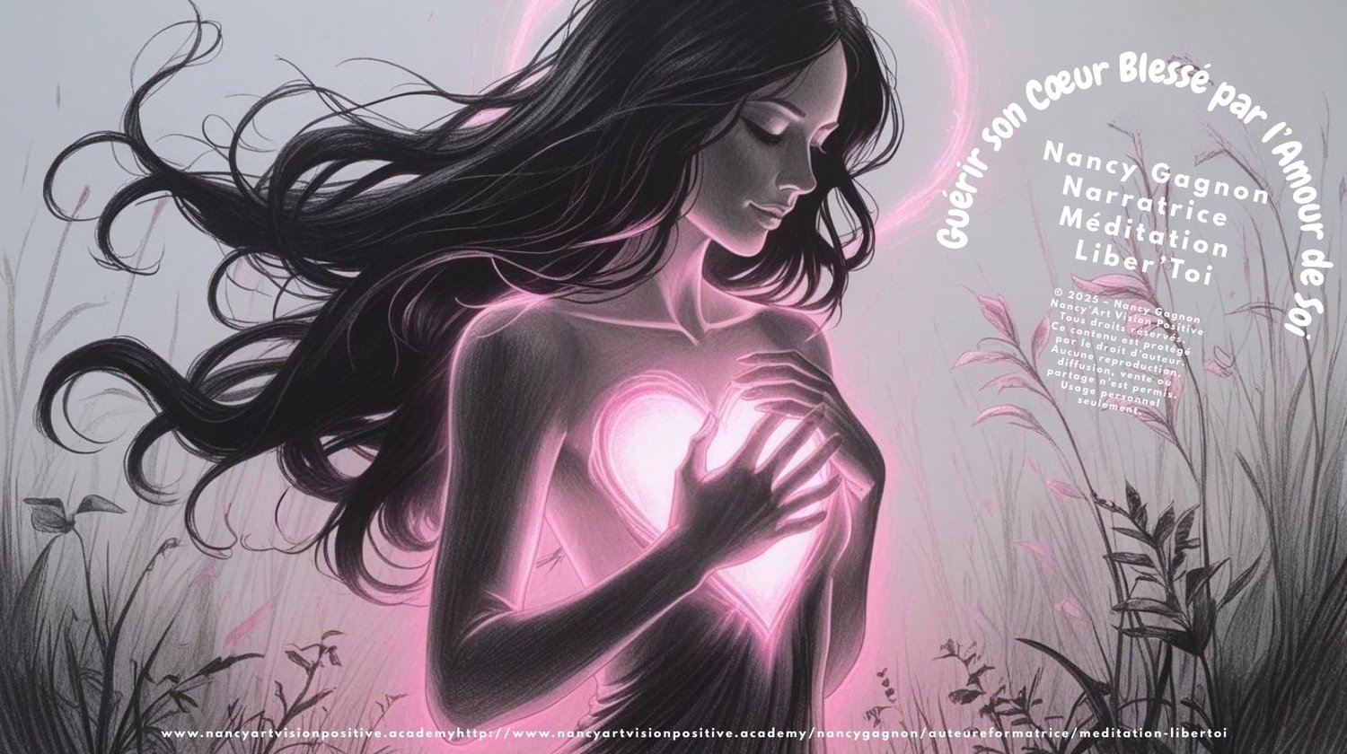 Aujourd’hui, je t’invite à vivre une méditation profondément transformatrice, une méditation créée pour t’aider à apaiser ton cœur blessé et à retrouver l’amour de toi-même avec douceur et vérité.