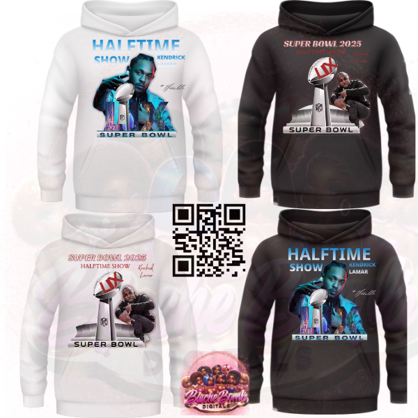 Celebrate the Super Bowl LVIX Halftime Show with this stunning PNG bundle of 3 design featuring Kendrick Lamar!